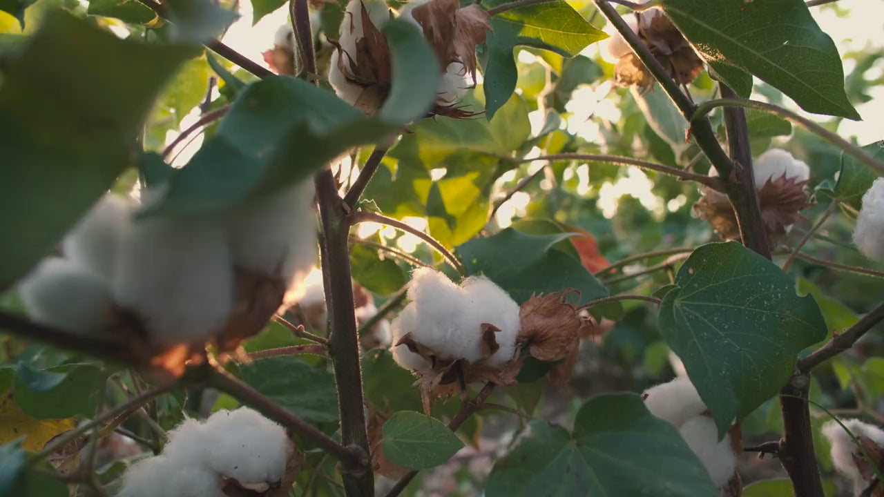 Notre coton est cultivé sans pesticides ni OGM, dans des champs européens (Grèce & Turquie), pour une empreinte carbone maîtrisée et une traçabilité totale.